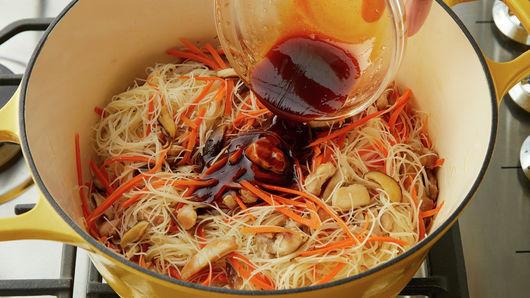 Do you hear that sound? That’s your Dutch oven, begging to be used to cook this dinner tonight. Inspired by Korean glass noodles but made grocery store-friendly with a swap of easy-to-find rice noodles, this tasty meal is not only an obvious choice, but it’s an affordable one, too.